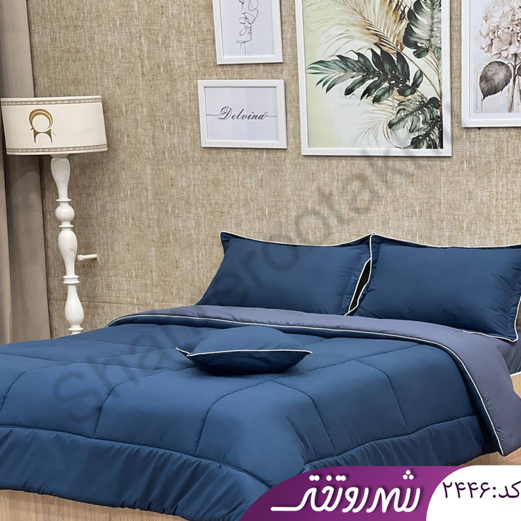 لحاف و روتختی مغزی دوزی آبی دورویه کد۲۴۴۶