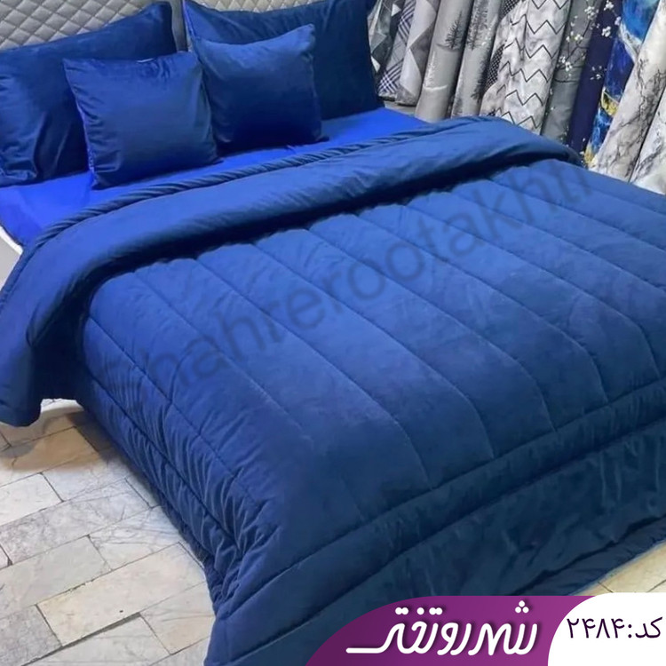 لحاف و روتختی مخمل کالیفرنیا آبی کاربنی کد۲۴۸۴