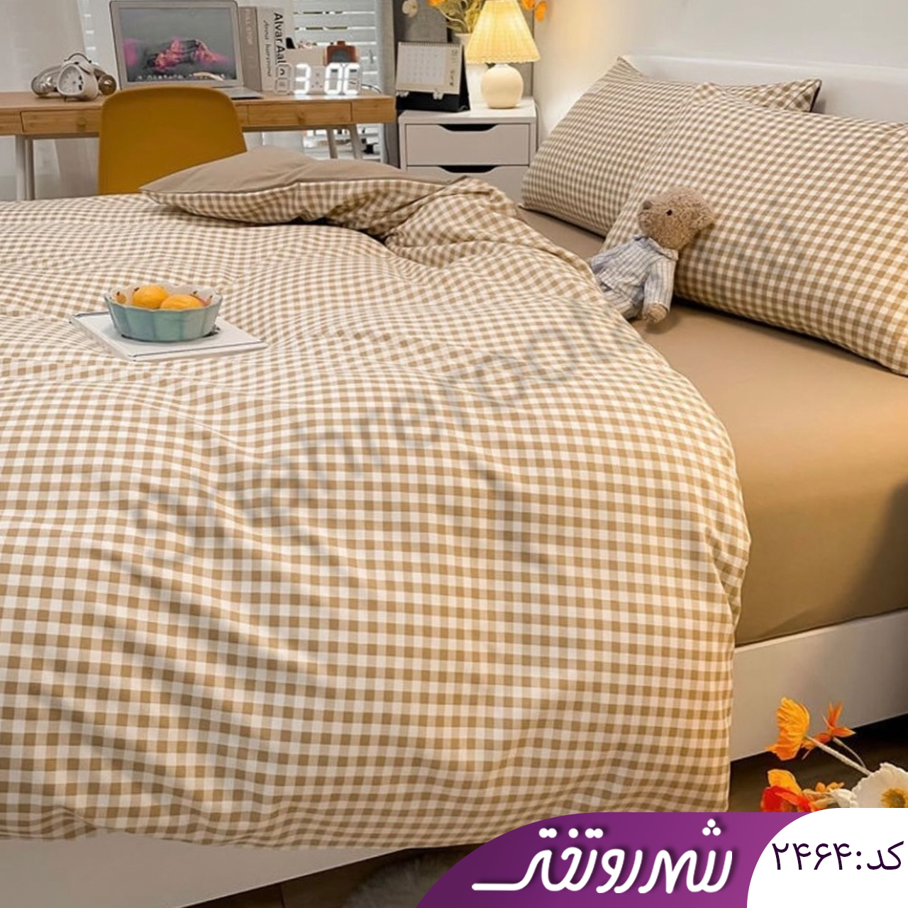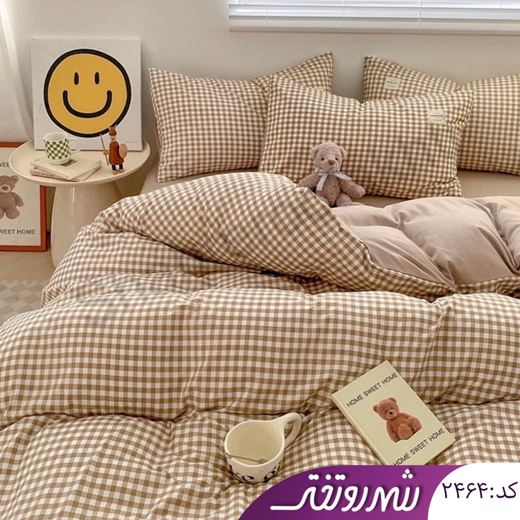 لحاف و روتختی چهارخونه نسکافه ای خوشرنگ کد۲۴۶۴