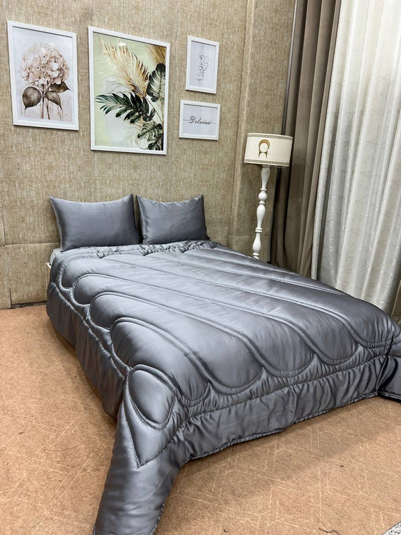 لحاف و روتختی ساتن ابریشمی طوسی