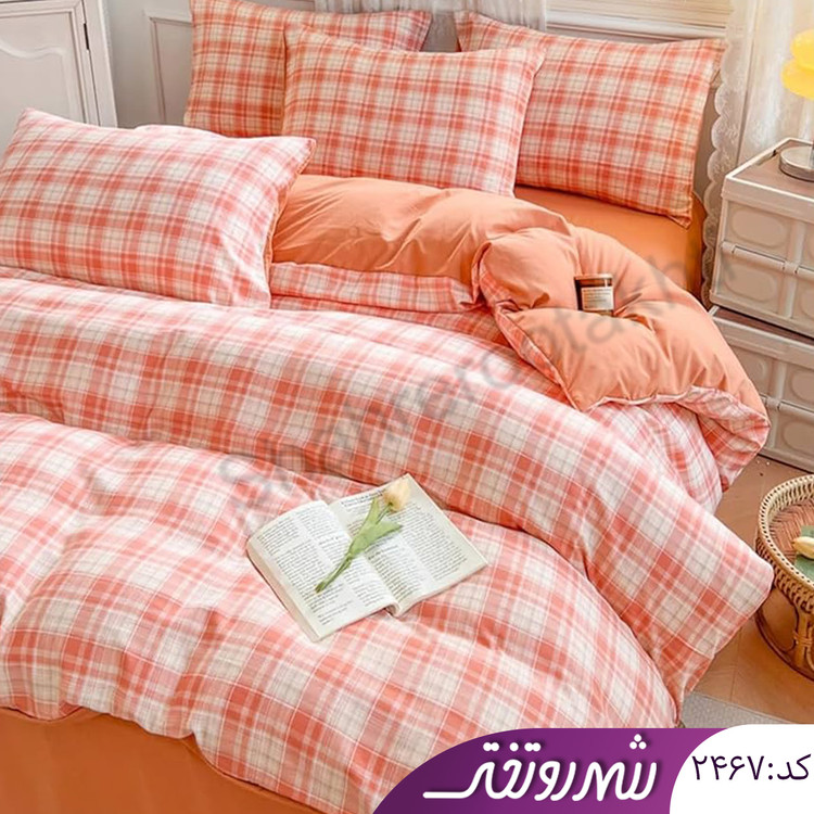 لحاف و روتختی چهارخونه صورتی کد۲۴۶۷