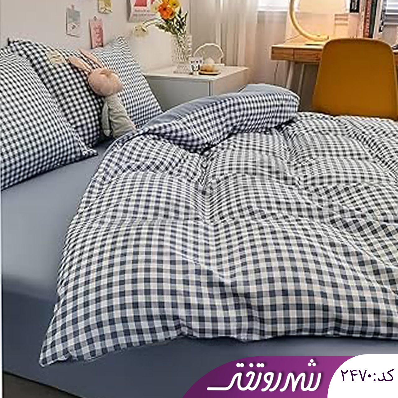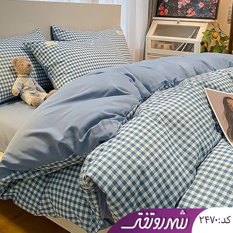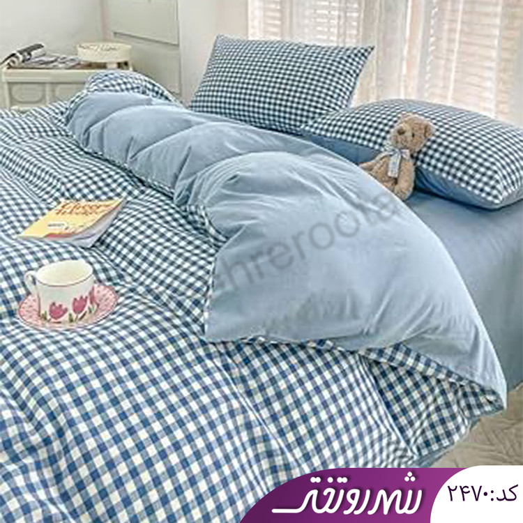 لحاف و روتختی آبی چهارخونه کد۲۴۷۰